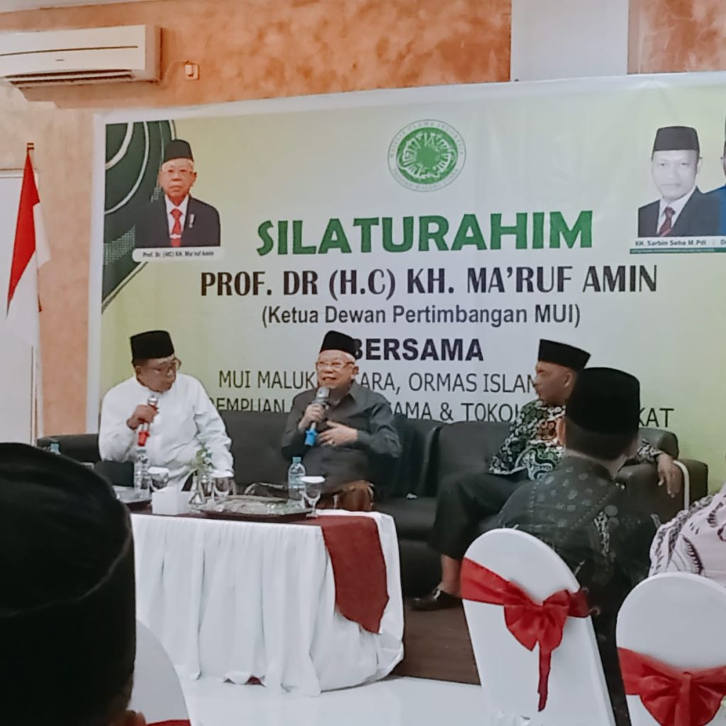 Ternate, 27/10/2025- Di sela-sela agenda Deklarasi Forum Keberagaman Nusantara di Kota Ternate, Prof. Dr. (H.C.) KH Ma’ruf Amin menyempatkan diri untuk hadir dalam acara yang digagas MUI Maluku Utara. Kegiatan yang bertajuk ‘Silahturahim Prof. Dr. (H.C) KH. Ma’ruf Amin dengan MUI Maluku Utara, Ormas Islam dan Tokoh Masyarakat’ di Royal Resto Kalumpang Ternate, berjalan dengan penuh keakraban. Dalam sambutannya, Samlan Ahmad (Ketua MUI Maluku Utara) menyampaikan bahwa status provinsi paling bahagia yang disematkan pada Maluku Utara, tidak sejalan dengan realitas masyarakat. Padahal jika diliat dari kekayaan SDA misalnya, memiliki potensi yang luar biasa. Oleh karena itu, lanjutnya kekayaan SDA berupa tambang ini mesti dikelola secara berkeadilan sehingga dapat dinikmati juga oleh rakyat secara merata, pintanya. Dalam tausiyahnya Prof. Dr. (H.C.) KH Ma’ruf Amin menyampaikan Kita harus kembali ke UUD 1945, dimana pada pasal 33 mengamanahkan agar pengelolaan SDA di kelola oleh negara dan di kembalikan kepada rakyat untuk mencapai kemakmuran rakyat. Pemerintah saat ini yang dipimpin oleh Presiden Prabowo Subianto, berkomitmen memperhatikan kesejahteraan rakyat, kedudukan MUI adalah mitra pemerintah, dimana kebijakan yang bermaslahat untuk umat secara umum kita harus didukung, namun ketika tidak sejalan, kewajiban ulama untuk menasehati agar tegak lurus, termasuk pengelolaan SDA. Kegiatan ini di kemas dengan dialog dan di akhir acara foto bersama.